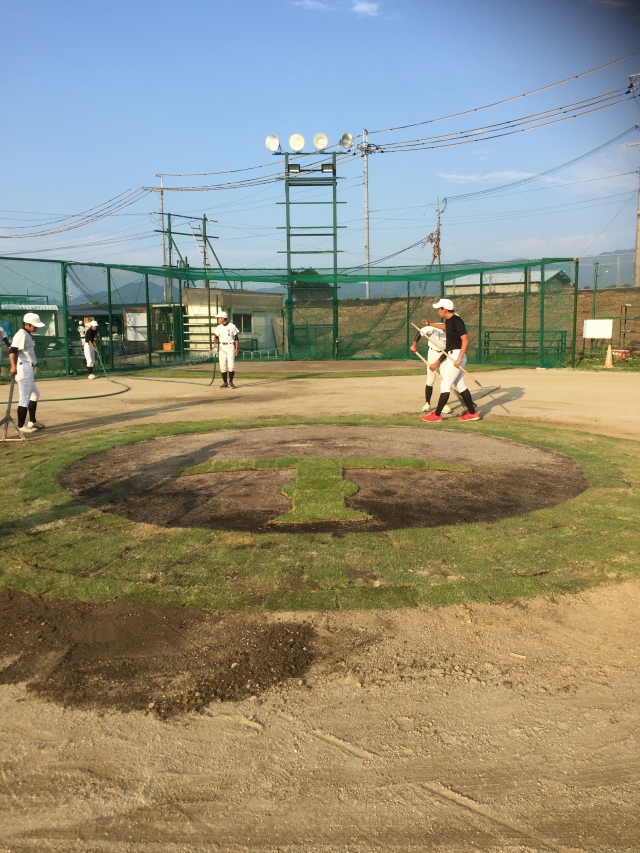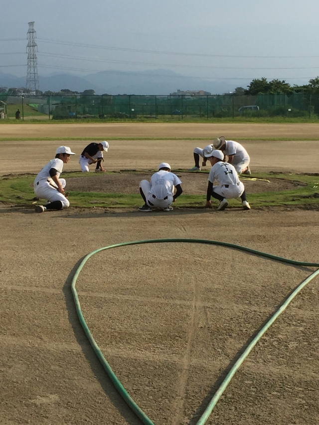 三年生は監督の教え通り、芝生をはってくれてます!