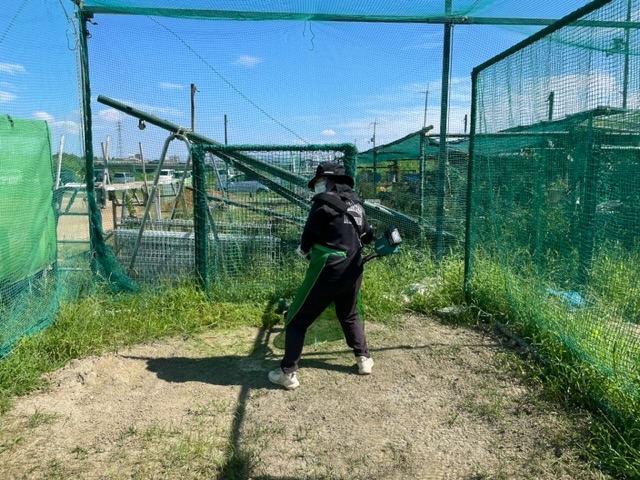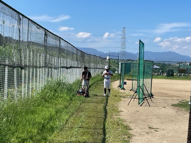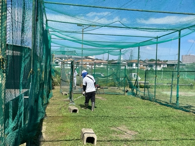 今日は、朝からグランドの草刈り