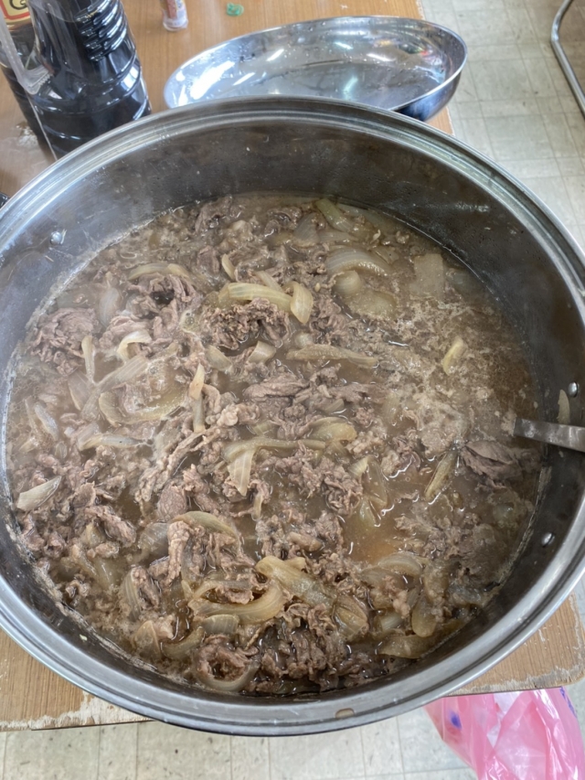 2020.12.12練習 今日のお昼は峠下畜産のお肉とねぎらいふぁーむのサムライねぎたっぷりの牛丼😊