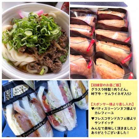 お昼は肉うどんの炊き出し😋そしてスポンサー様より差し入れも♪ありがとうございました!