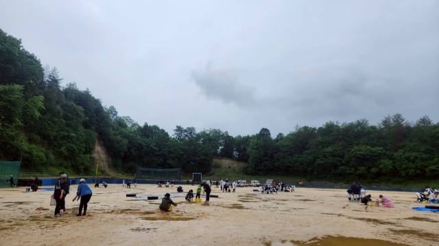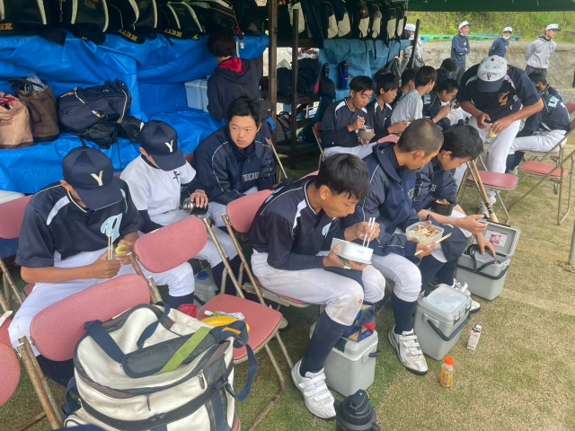 2025.05.25.③2年生は草津シニアさんGにて練習試合です。グランド整備が完了し、まずは腹ごしらえ🍱