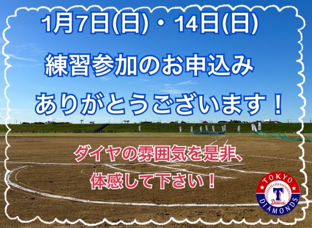 1/7(日)・8(祝):通常練習⚾️練習参加者あり