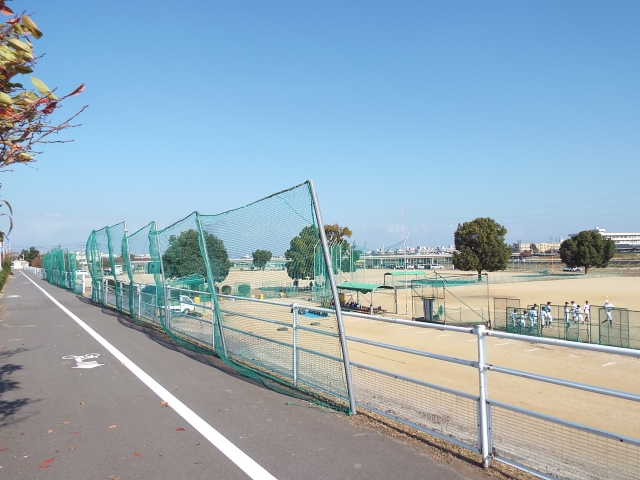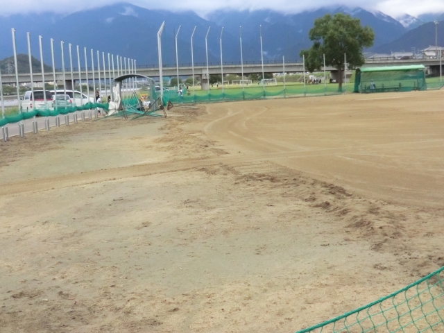 台風でダメージを受けたグランド。整備を急ぎます。