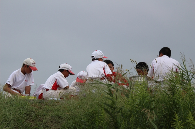 本日はグランド大改造のため高台で昼食♪風が気持ちいい季節になりました♪