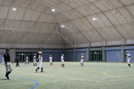 鏡野ドームでナイター練習です。