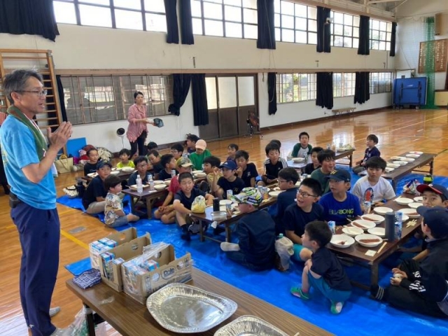 元月ノ輪小で新団員の歓迎会とバーベキューを行いました。