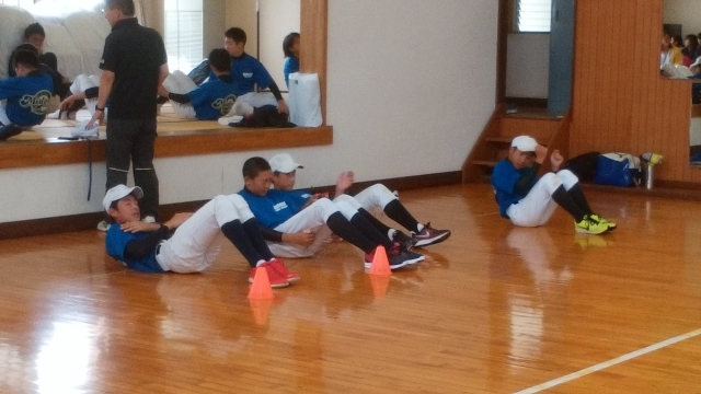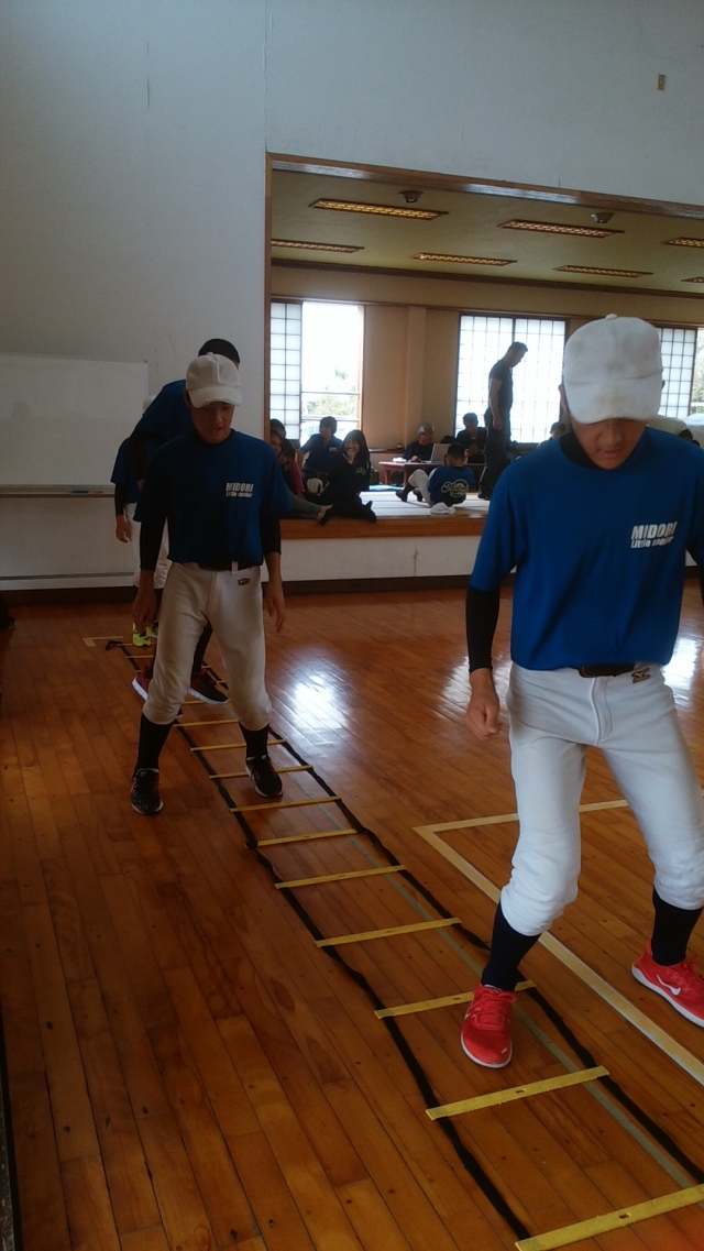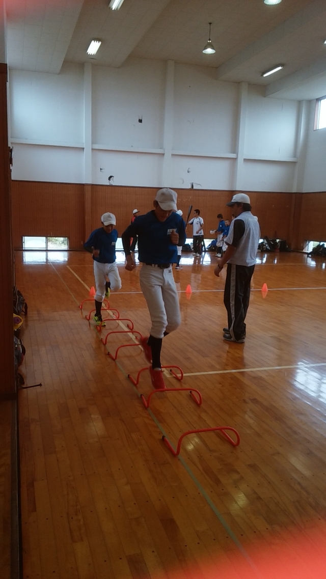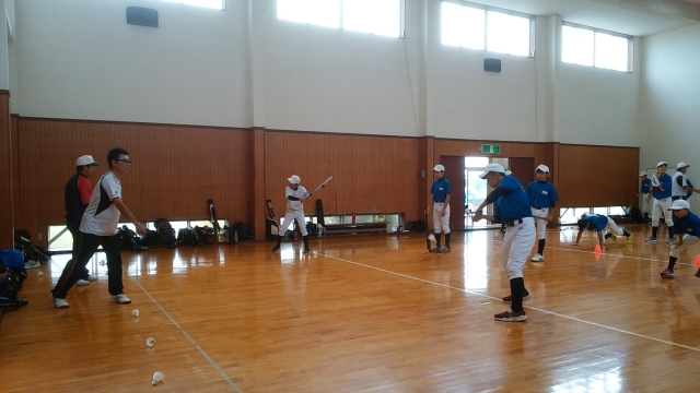 台風のため体育館を借りての練習
