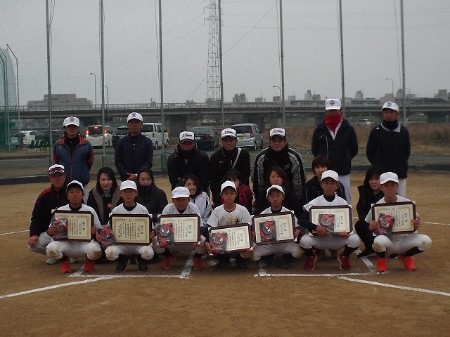 Tボール大会で優勝したジュニア選手たち。