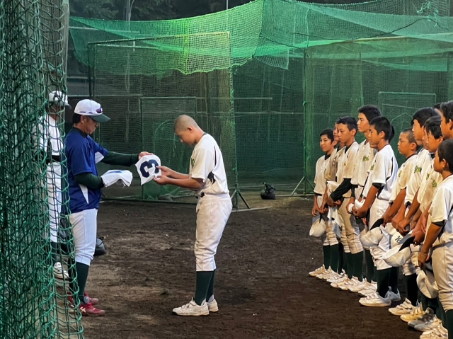 初大会に向けて、1年生に初めて背番号が配られました。