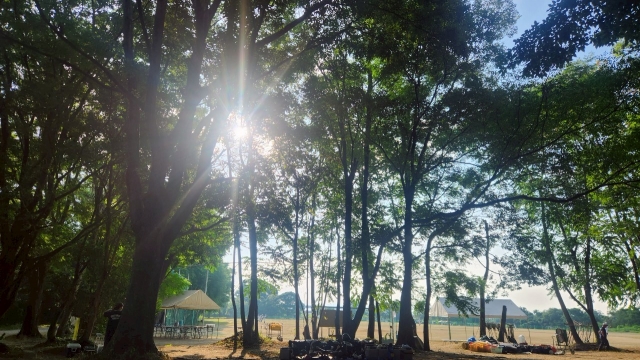四季折々の姿を見せるかわきたG。真夏のギラギラ太陽も、早朝の木漏れ日はこんなにキラキラ✨️✨️