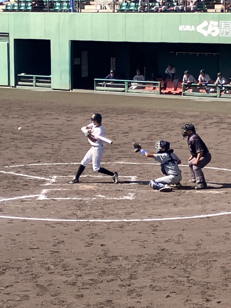 3回までノーヒットのまま4回に2番金田がセンター前に落ちるヒットから3番寺田がライトオーバーのツーベースヒットでランナー2.3塁、4番河村がセンターへの犠牲フライで1点を先制、その後6番米倉、8番里中がタイムリーヒットを放ち2点を追加し4回に3点、5回、6回に1点ずつ追加し7回には先頭の金田が四球で出塁、3番寺田がヒットで続き4番河村のタイムリーヒット、6番米倉がレフト線へのタイムリーツーベースヒットで7-0。