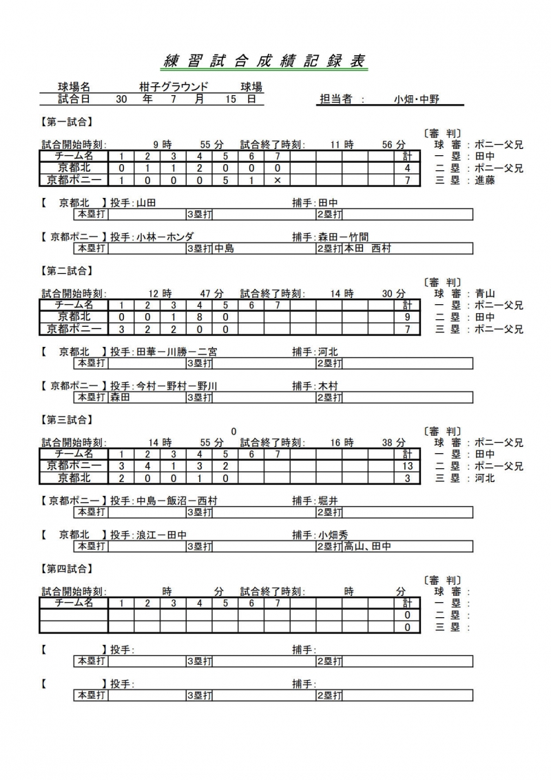 試合結果一覧 > 41期練習試合 京都ポニー 対 京都北リトルシニア