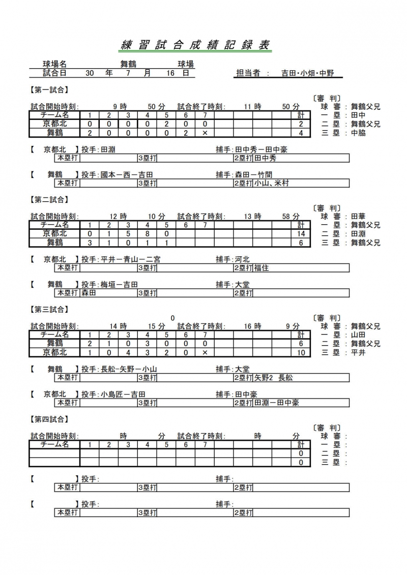 試合結果一覧 > 42期練習試合 京都北リトルシニア 対 舞鶴