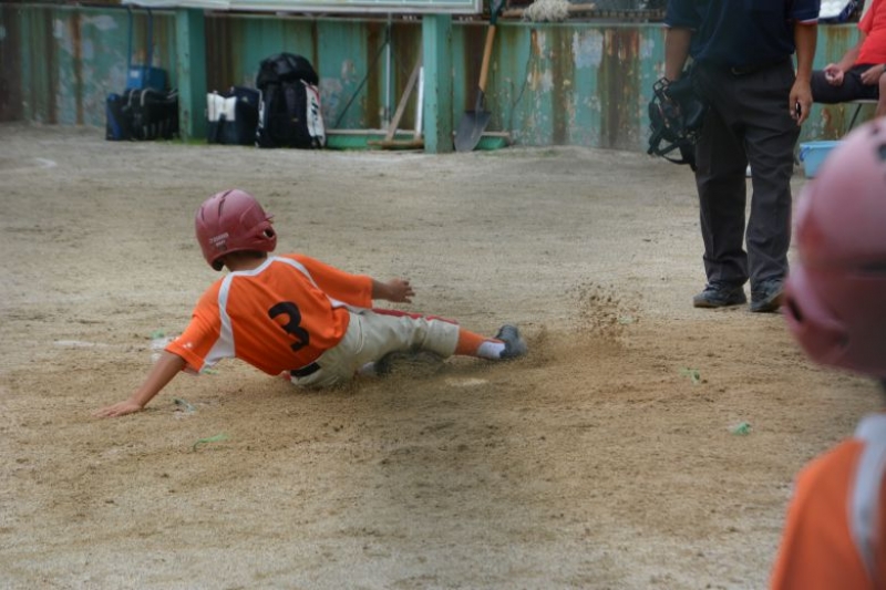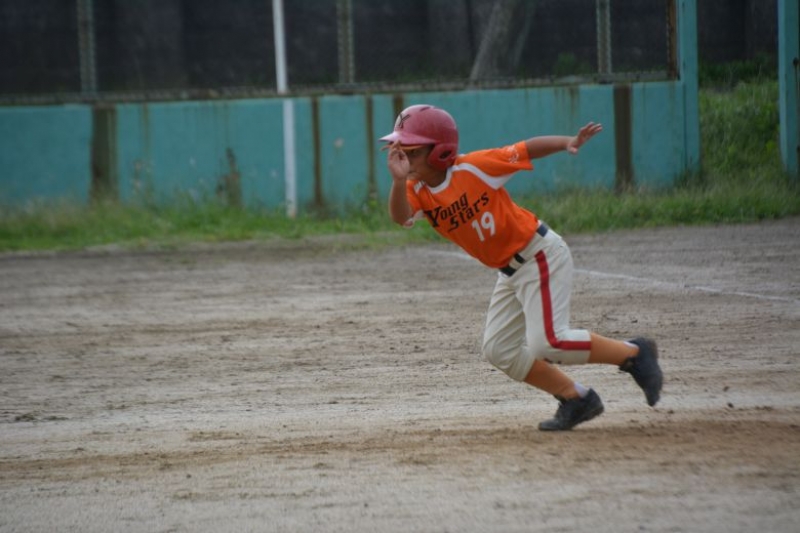梅田ヤングB1は3点を追う2回、相手の失策、バッテリーミスなど守備の乱れに乗じて11点を奪い逆転。ヒロトを救援したジョーが2回で5三振を奪い無失点に抑えた。