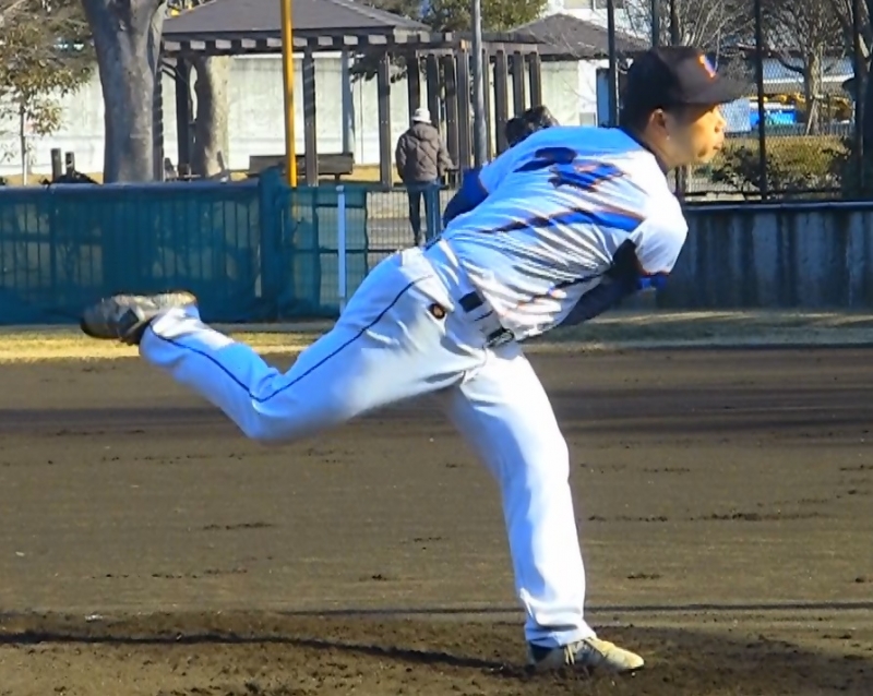 ファルコンズの先発は熊川。4回を奪三振3、四死球2、被安打3でB-NINE打線を無失点に抑える。