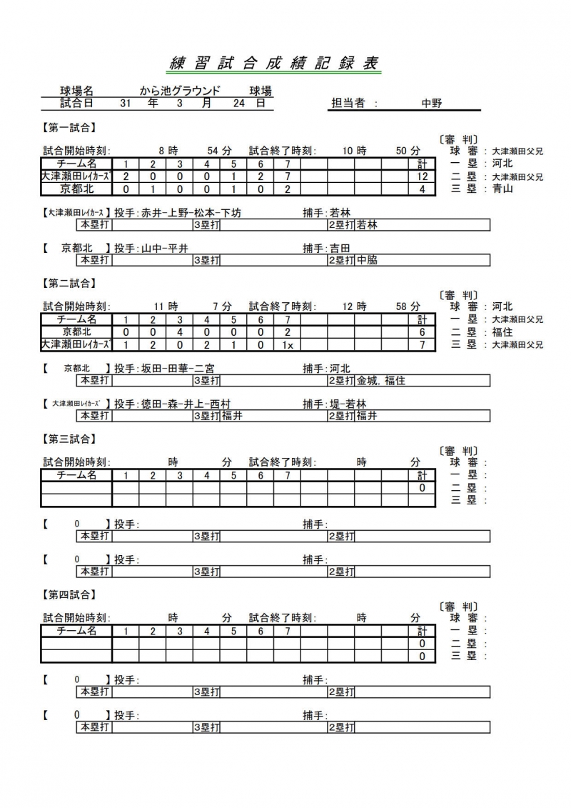 試合結果一覧 > 42期練習試合 京都北リトルシニア 対 大津瀬田B