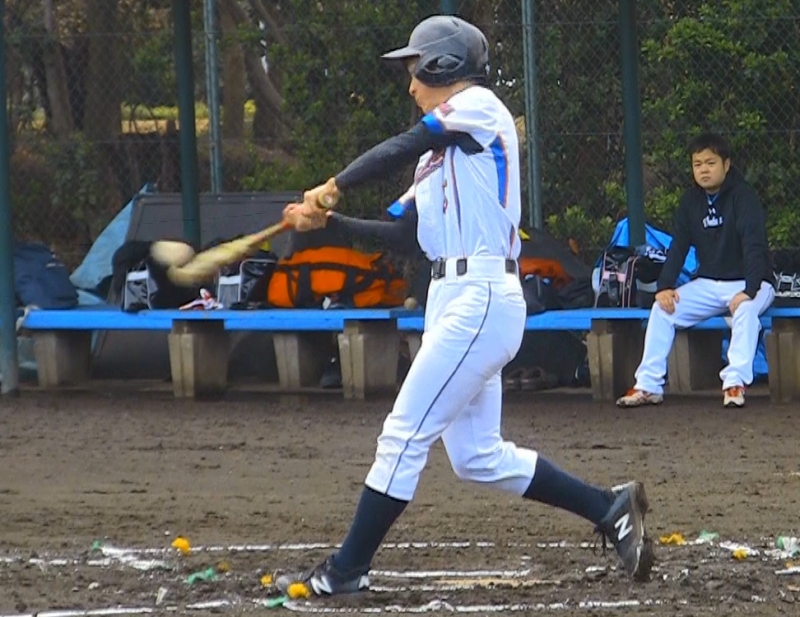 ファルコンズはすかさず反撃開始。2本のヒットで1死1,2塁とし、隼也が3塁線にバント。打球を処理した投手が隼也のスピードに慌てて、1塁悪送球。2塁走者の川名が還って同点とした。さらに、投手失策で武井が還り逆転。2死後、前田の適時打で隼也が還った。