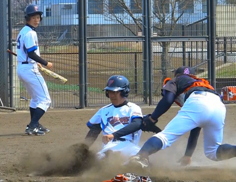 ファルコンズは2回に1死1塁の場面で、武井がサードゴロ。ゲッツーを狙った三塁手が2塁悪送球。カバーリングが遅れる隙に1塁走者の池田が長駆して本塁を狙うが、本塁タッチアウト。2死3塁となり、住友がライト線に2塁打を放ち、武井を還し、同点に追いつく。亮太が三振振り逃げ後に、2盗。捕手と投手の連携ミスの間に住友が還り逆転に成功した。