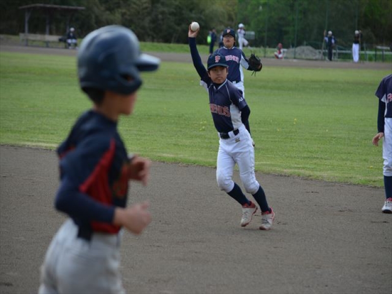 ・サードゴロ。ファースト「しゅうた」ショートバウンドをナイスキャッチ。1アウト。