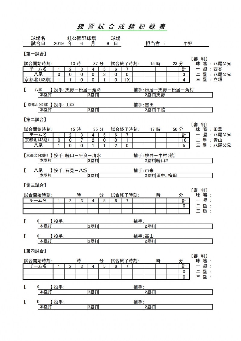 試合結果一覧 > 43期練習試合 京都北リトルシニア 対 八尾