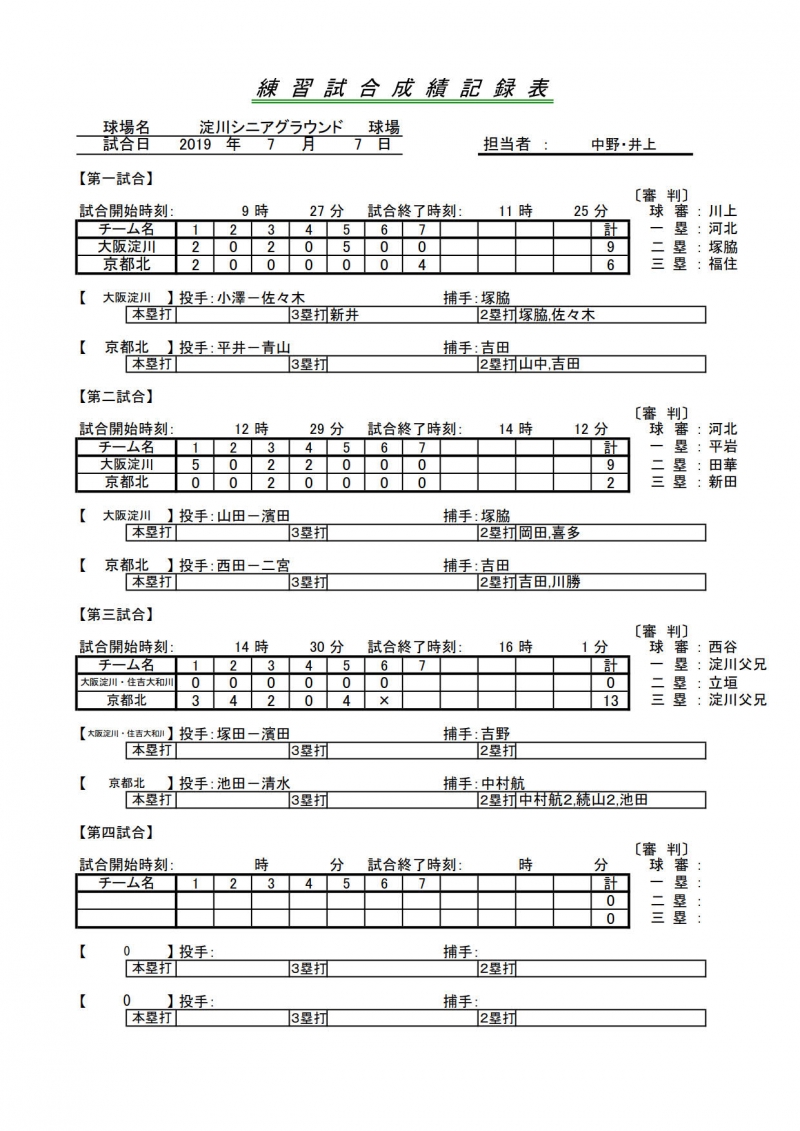 試合結果一覧 > 42期練習試合 大阪淀川 対 京都北リトルシニア