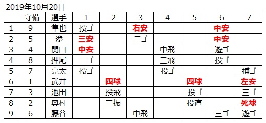 武井を負け投手にするなと檄が飛ぶ。6回に1死3塁の好機を作り、渉がセンター前に適時打を放ち、隼也を還し同点に追いつく。