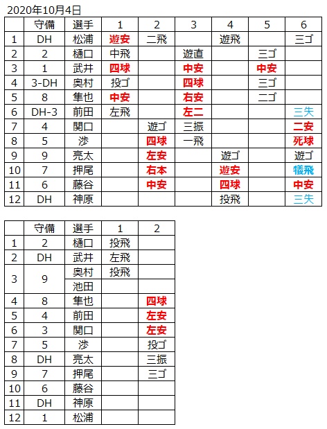 3回も1死1,2塁の好機に、隼也が12塁間を破る適時打で武井を還す。さらに、前田の適時2塁打で奥村と隼也が生還した。