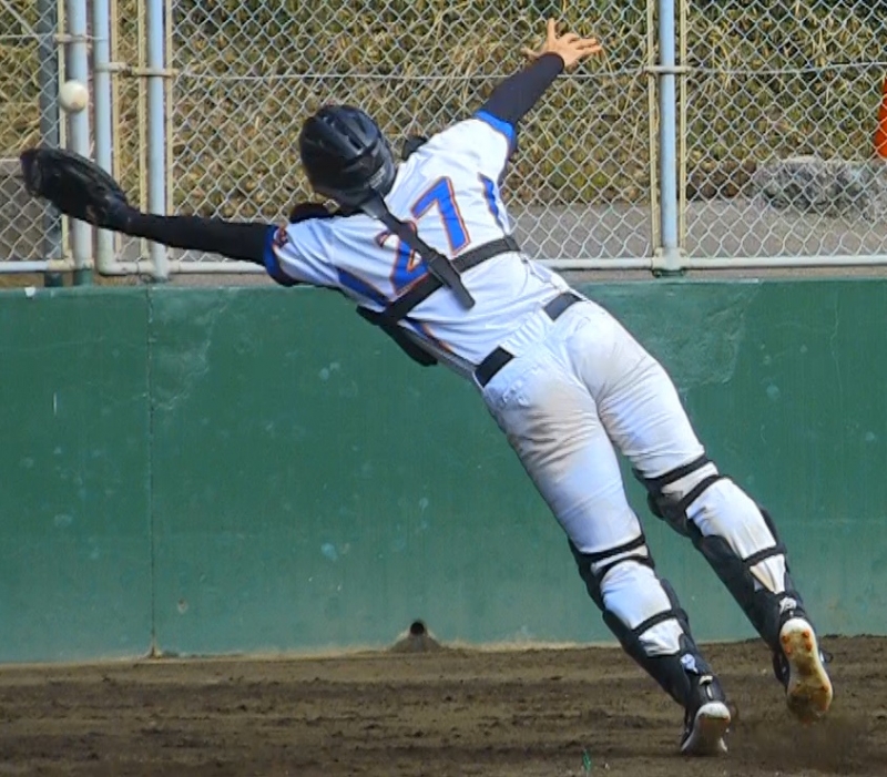 MIPは2回、2死ながら2塁に走者を背負う場面。9番打者のバントの打球が捕手川名の頭上に上がる。いったん前に出てきてからの、反転しながら後方へジャンピングキャッチ。苦しむ松浦を助ける好プレーだった。しかしながら、3回のめった打ちで心がやられて、後半は失策する場面もあった。捕手は投手の心が伝染してしまう唯一のポジション。打撃も2三振と精彩を欠いた。