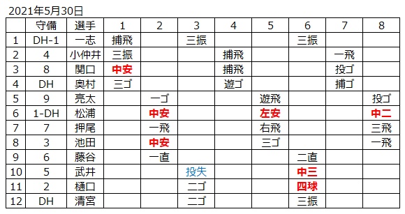 試合が決した後に時間が余っていたので、ミニゲームが行われました。打撃成績のみ加算します。