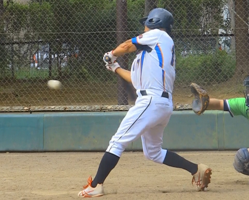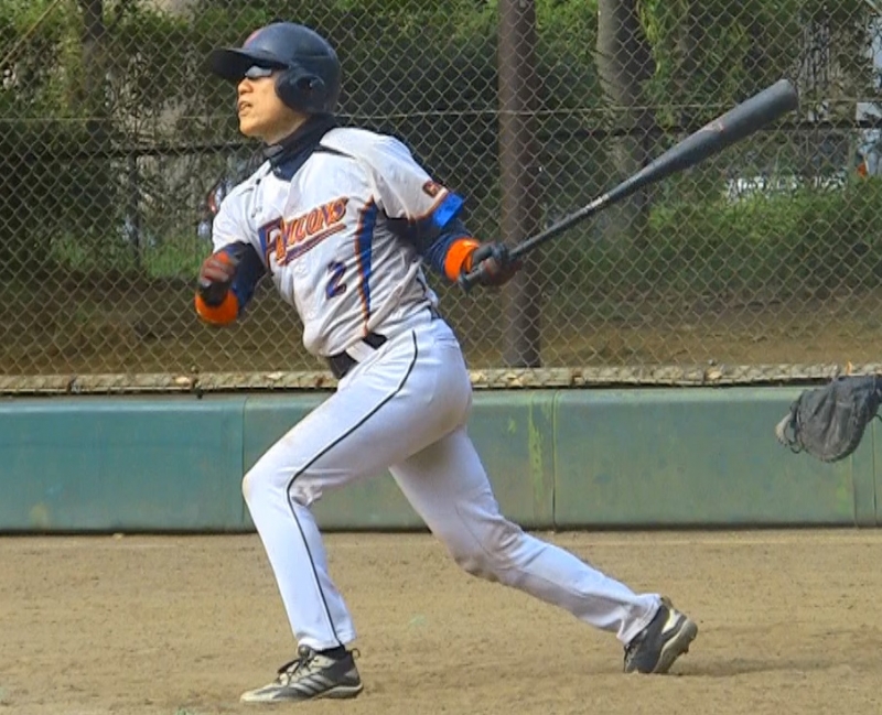 試合が動いたのは4回のファルコンズの攻撃。内野安打で出塁した久保村が3進。WPで先制の本塁を踏む。さらに、安打と四球でチャンスが広がる。押尾のライトスタンドギリギリに飛び込む本塁打で3点を追加する。