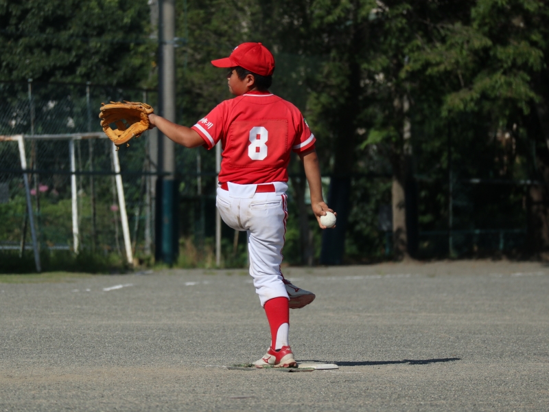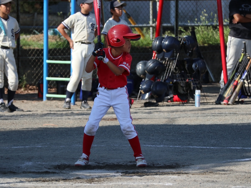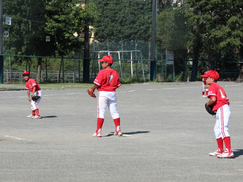 大内-峯田で1イニングずつ投捕を交代。計2奪三振としたが守備の形を作れず。外野を守る6年生の頼もしさを感じた。