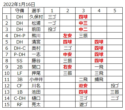 試合結果一覧