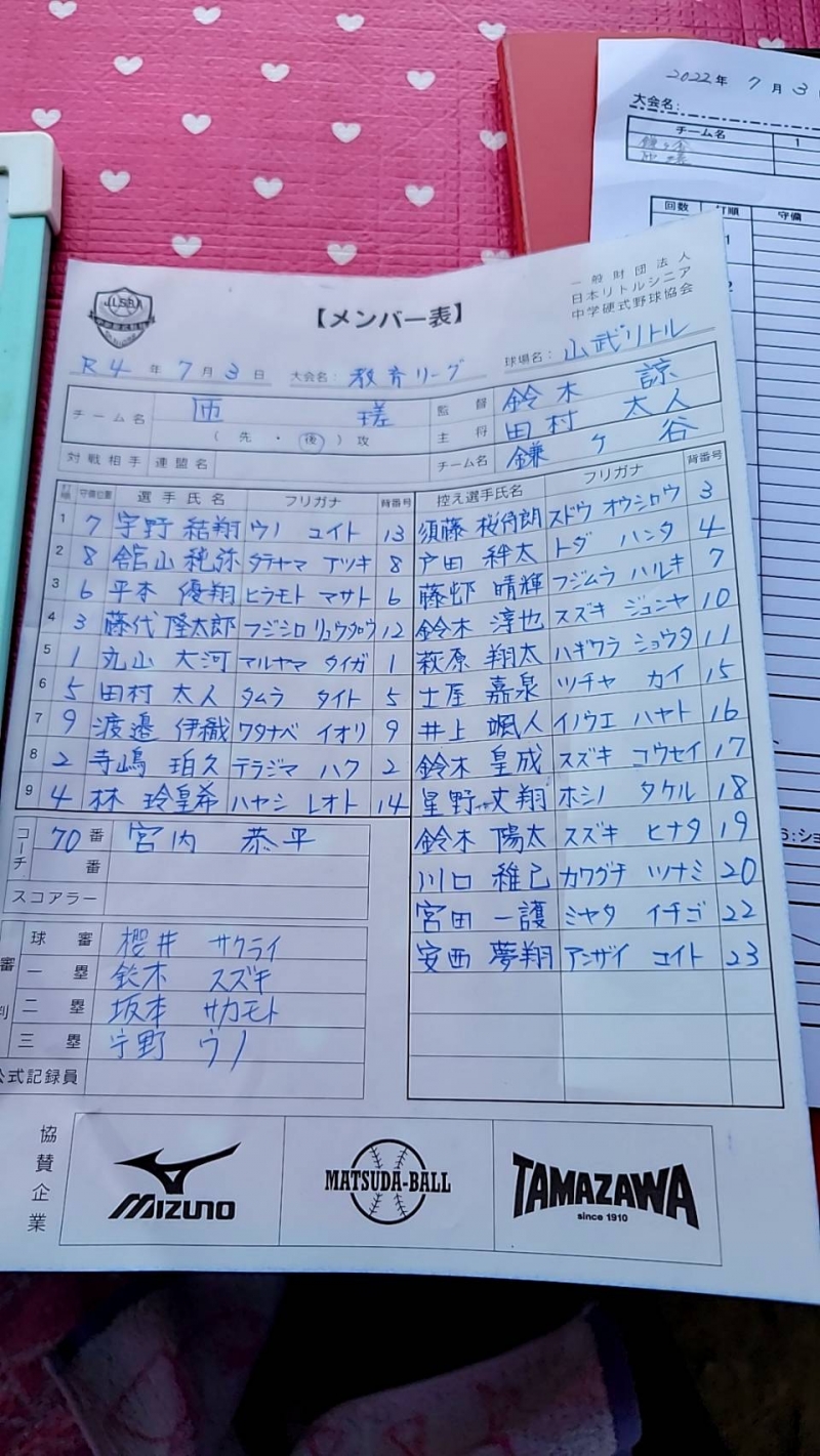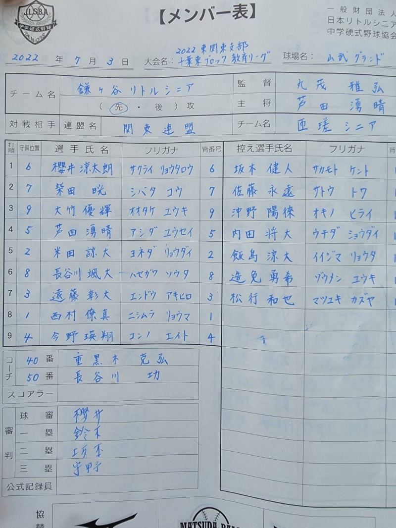 2022年千葉3ブロック教育リーグ鎌ヶ谷対匝瑳リトルシニア