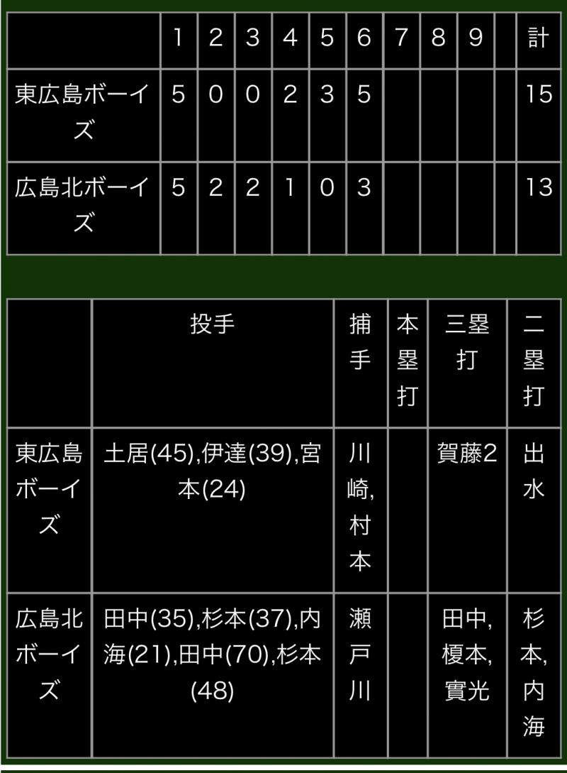 > 第12回中四国秋季大会広島県支部予選東広島ストロングス対広島北ボーイズ写真一覧