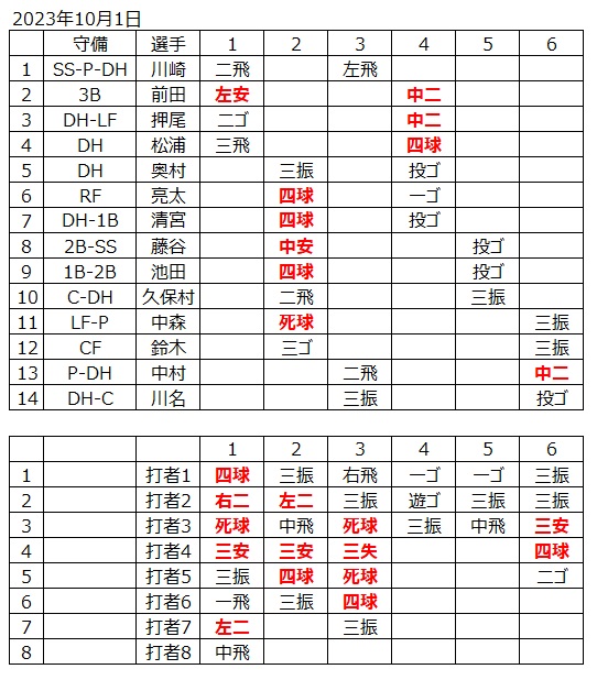 試合結果一覧