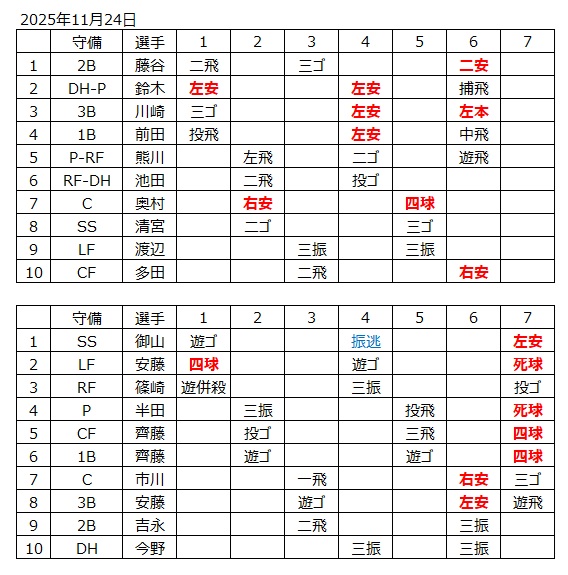 > ウインターリーグ武石ブルーサンダーOB対千葉ファルコンズ写真一覧