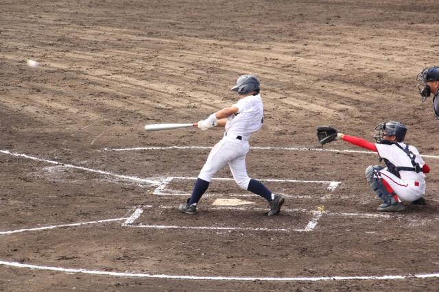 2回裏,1死からエラーで出塁した坂田(涼)を一塁において,7番西村が左中間へタイムリー二塁打を放ち先制!
