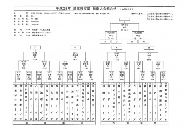 平成28年埼玉県支部 秋季大会組み合わせ (中学生の部)