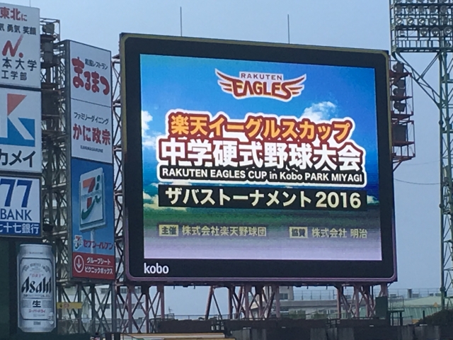 楽天イーグルスカップ中学硬式野球大会SAVASトーナメント2016が12日(土)に開幕しました。仙台宮城野の初戦は12日は雨のため試合中止となり13日(日)に仙台ボーイズと対戦いたしました。試合は2-2の引き分けで抽選となり6-3で抽選勝ちとなりました。選手たちはみな小学時代からの知り合いも多い仙台ボーイズとの試合を楽しんでプレーしていました。また来年ジャイアンツカップ予選で対戦出来ればと思います!さて準決勝は26日(土)にkoboパーク宮城において9:30より東北楽天シニアと対戦いたします!2年生にとっては昨年の一年生大会以来の対戦となります。思い切ってぶつかっていきたいと思います、ご声援よろしくお願いいたしますm(__)m