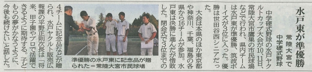 > 第4回水戸ヤクルトカップ 準優勝【3年生】