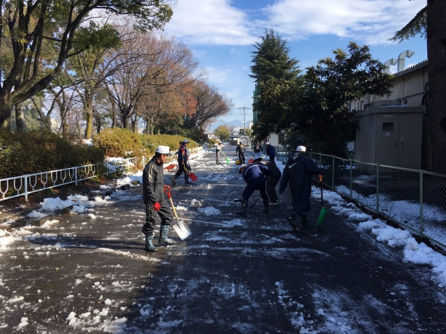 いつもお世話になっております、明電舎脇と国母公園駐車場の雪かきを父兄を中心に奉仕活動を行いました。