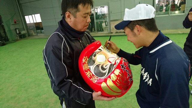 本日は主将が選手全員が見守る中、だるま開眼を行いました。