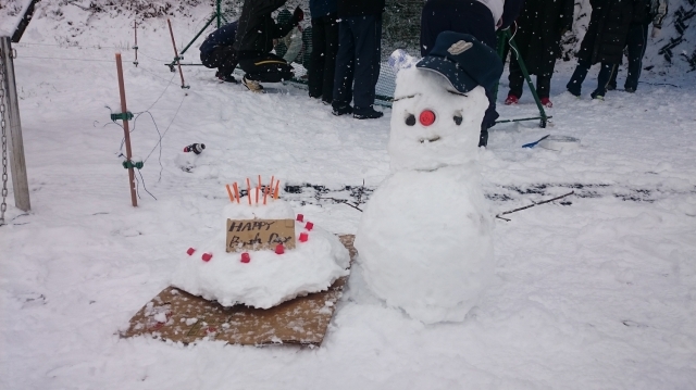 今日が誕生日の6年生がいたので、サプライズの雪の誕生日ケーキです!