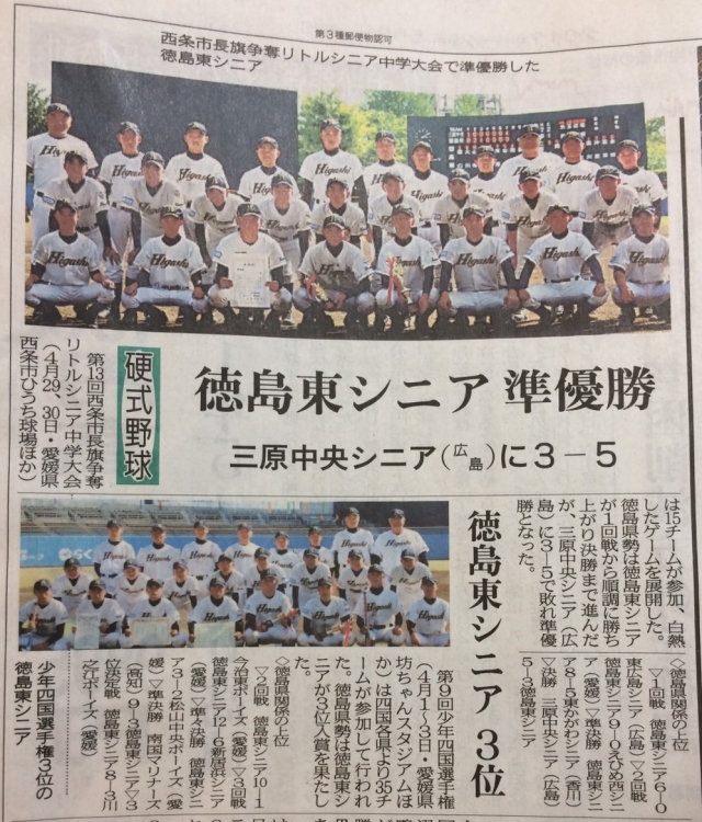 先日行われました四国選手権および西条大会での徳島東の試合結果が5、月9日付徳島新聞の「あわスポーツ」欄に掲載されました!
