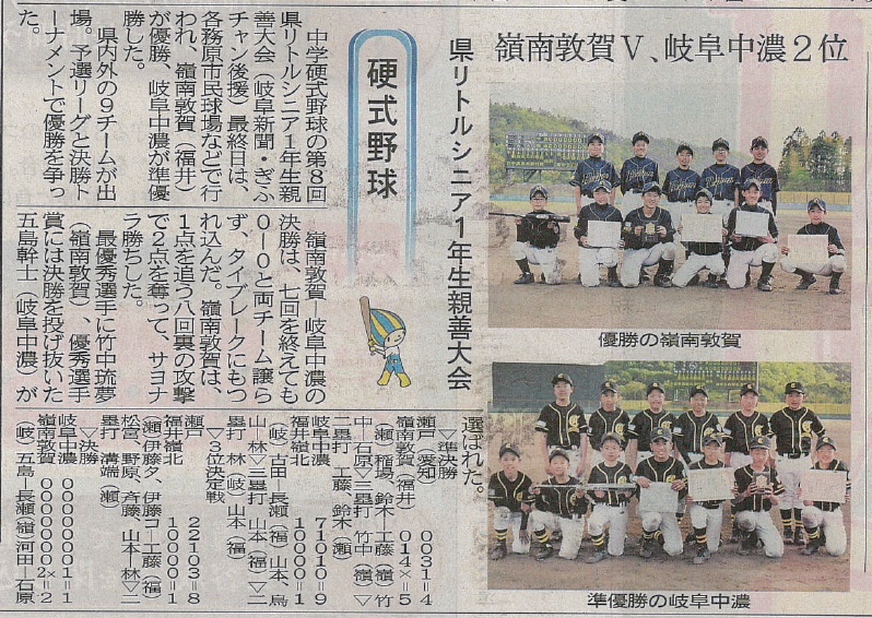 新聞記事 岐阜県リトルシニア1年生大会