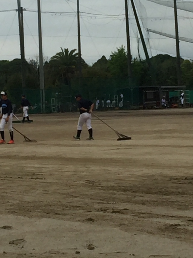 昨夜からの雨のため、本日はグランド状態が悪いので隅で基本練習しました。