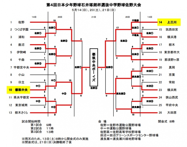 佐野市の関係者の皆様、グランドを提供して頂いた佐野高校の皆様、連日グランド当番でお手伝いして頂いた関係者の皆様、本当にありがとうございました。