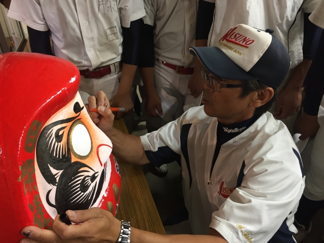 選手権大会に向け、監督を筆頭にダルマの目入れ式が行われました❗️選手一人一人の思いを込め、すべての集大成を見せる時が来た‼️