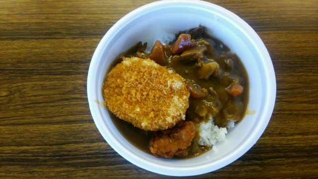 そして本日の昼食はコロッケと唐揚げがのっかったボリュームたっぷりのカレー!江南婦人部の皆さんが大奮闘!エコスタに響き渡るドリフ?なみの笑い声。なんだかんだと一番盛り上がっていたのは売店ブースだったかもしれません。婦人部の皆さんお疲れ様でした!とっても美味しかった。