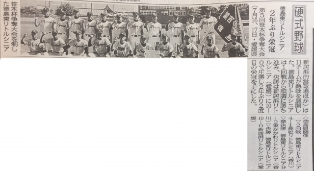 7月16日、17日に開催され、優勝を飾った第5回笹本杯争奪野球大会の結果が、24日付徳島新聞「あわスポーツ」欄に掲載されました!